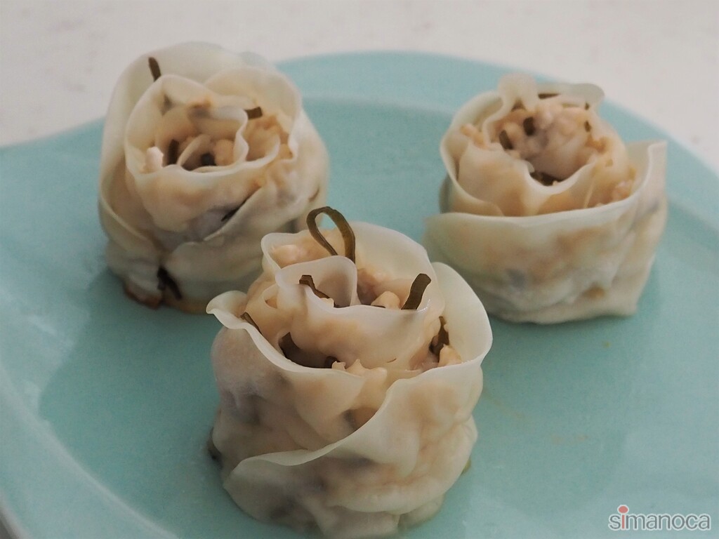 汐ふき昆布ささめ」と鶏むねミンチ肉を混ぜた具を、餃子の皮で巻いて、レンジで5分~様子を見ながら加熱しています。以外と簡単に出来ます。可愛くて美味しいものがお弁当に入ってたら嬉しいですね。